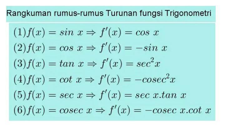 Pembahasan turunan fungsi aljabar : Berarti akar kuadrat dasar akan menjadi penyebut pecahan. Turunan fungsi (diferensial) ialah fungsi lain dari suatu fungsi . Rumus, aplikasi, notasi, perkalian pembagian dua fungsi dan contoh soal.kali ini seputarpengetahuan.co.id. Turunan suatu turunan fungsi yang ditulis dengan notasi dengan rumus: